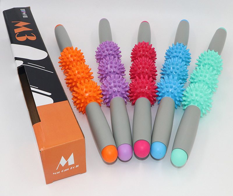 四球付き立体按摩で二の腕のむくみをほぐす多機能細身筋膜ローラー