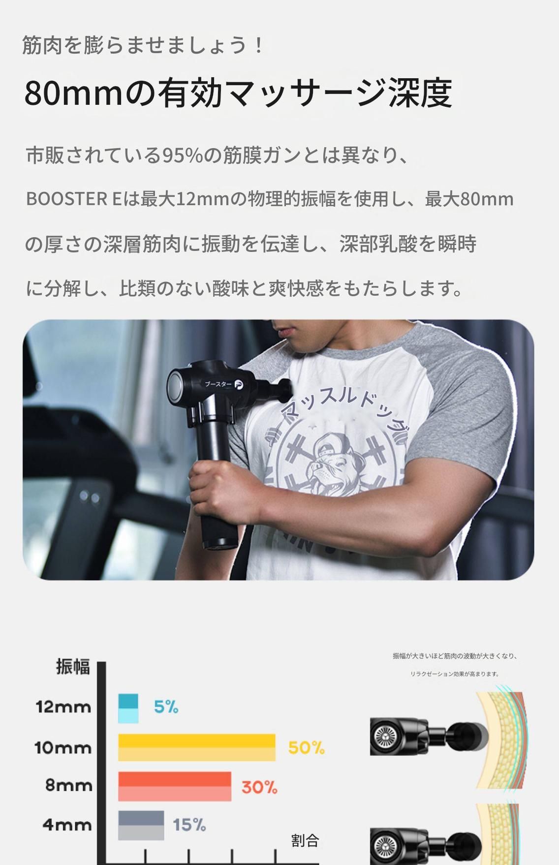 6種類の交換可能なアタッチメントヘッドが付属し、球形や円柱形など部位に合わせた最適なマッサージが可能です。