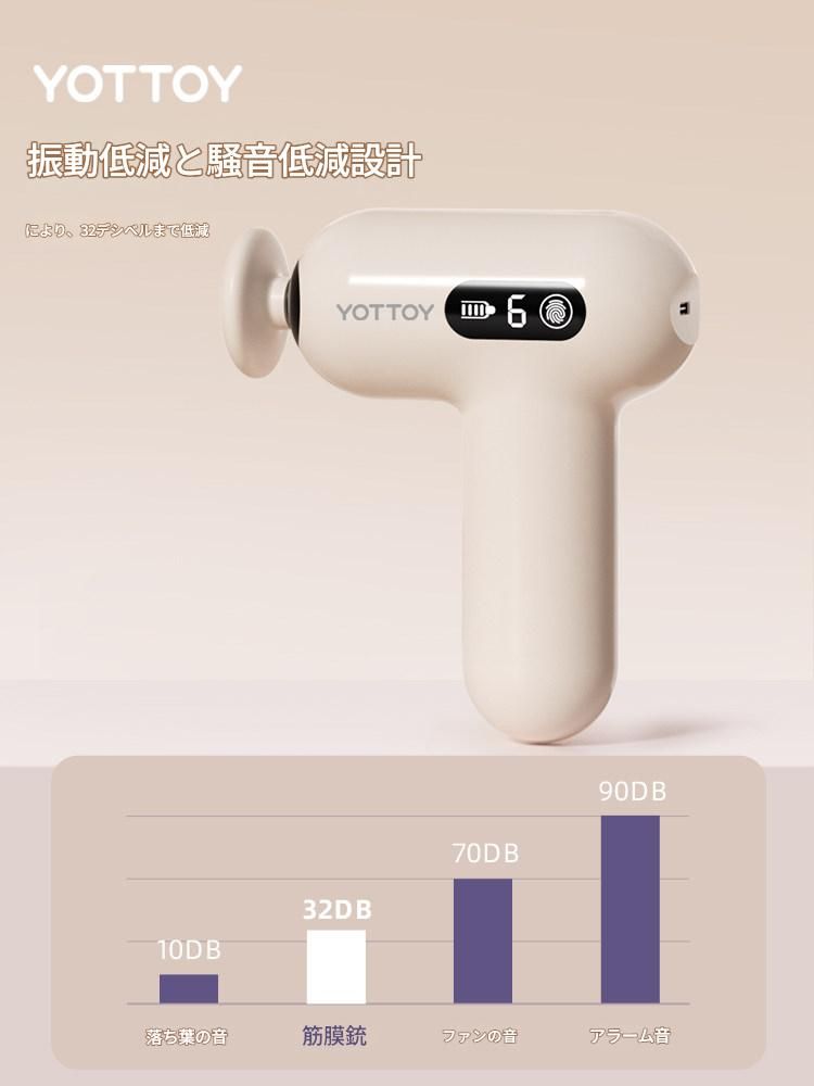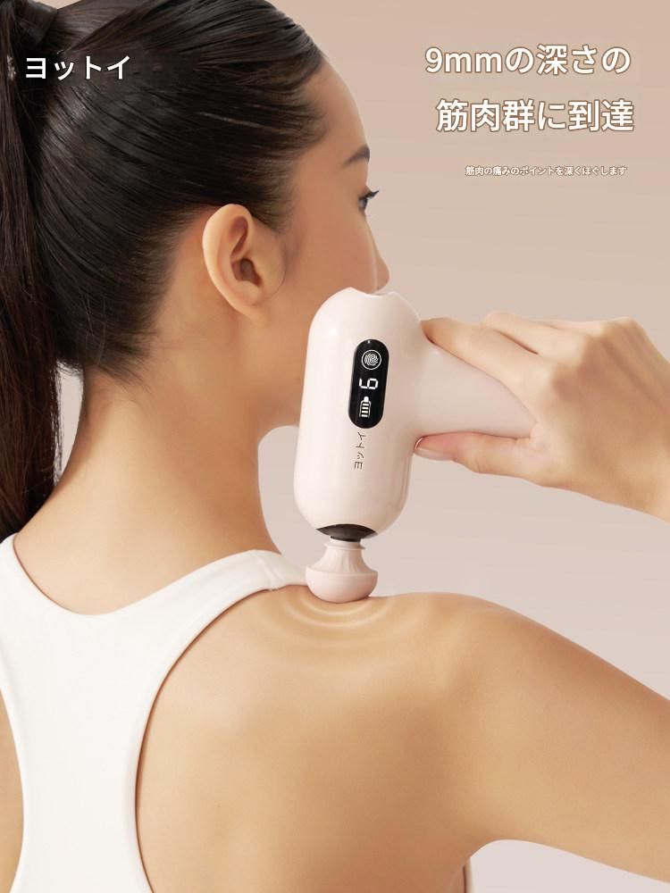 超小型で超軽量な電動筋膜ローラーです。 持ち運びに便利なミニサイズながら、五段階の振動調整機能を搭載しています。 四種類の交換可能なマッサージヘッドが付属し、肩や首、腰、足裏など全身のケアに対応できます。 九ミリメートルの振動幅で深層筋膜まで効果的にアプローチし、筋肉の疲れやコリをほぐします。 デジタル表示画面で電池残量と強度レベルが一目で確認でき、使いやすさも抜群です。