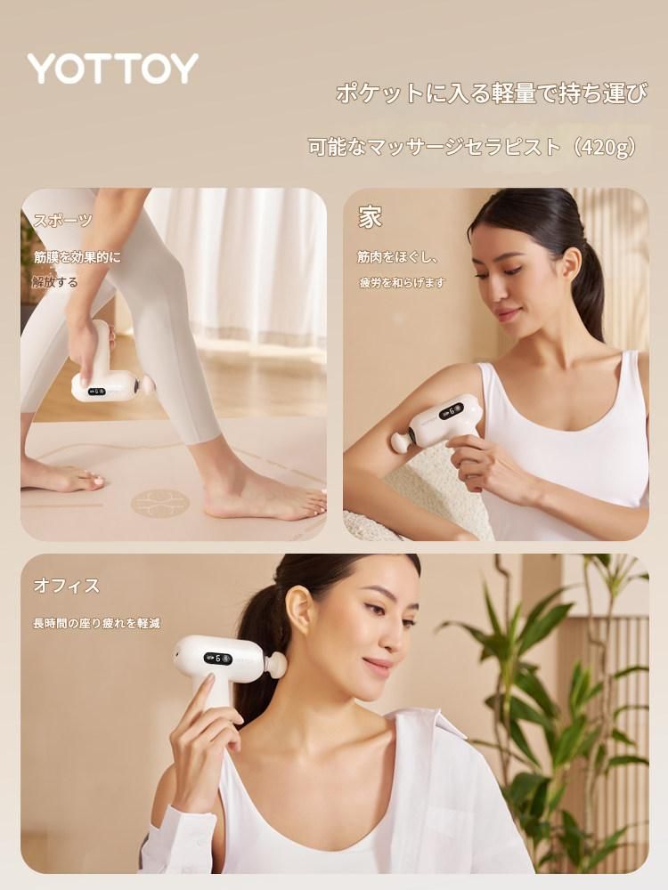 四種類の交換可能なマッサージヘッドが付属し、肩や首、腰、足裏など全身のケアに対応できます。
