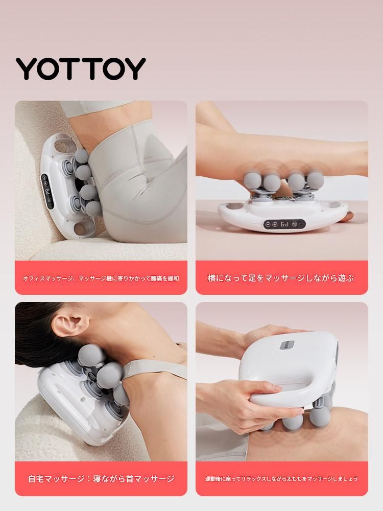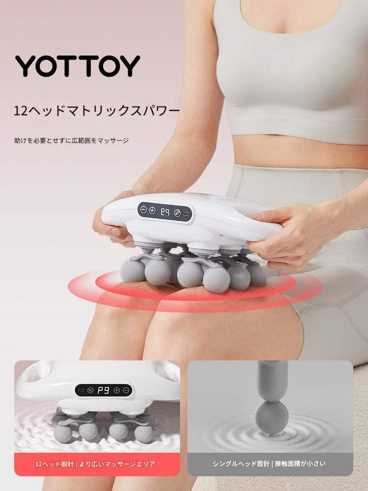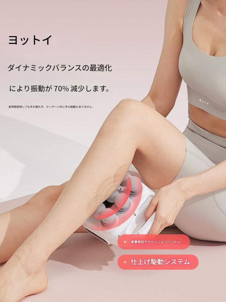 十二個の回転球を搭載した電動筋膜ローラーで、広範囲の筋肉を効率的にほぐします。