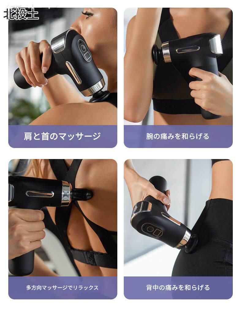 球形、平形、二股形、円柱形の四種類のアタッチメントが付属し、肩、腰、背中、腕、脚など部位に合わせて使い分けが可能です。