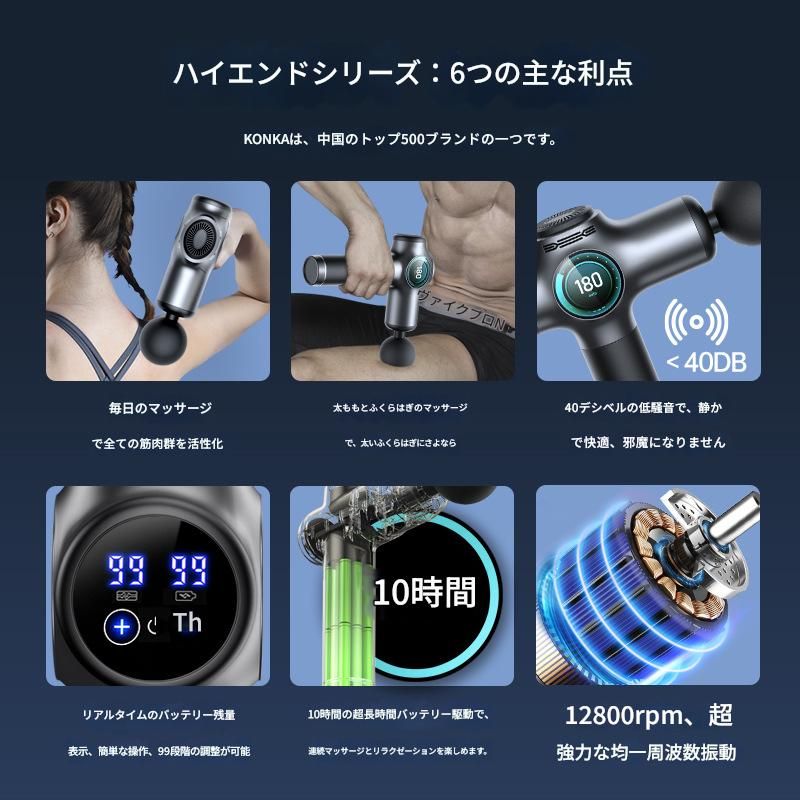 毎分最大12800回の高速振動で深層筋までしっかりアプローチし、運動後の疲労回復や日常のコリほぐしに最適です。