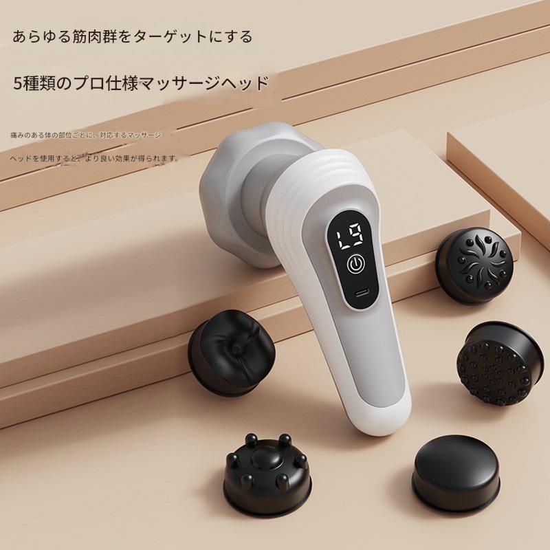五種類の専用ヘッドが付属しており、肩や腰、脚など部位に合わせた効果的な按摩が可能です。