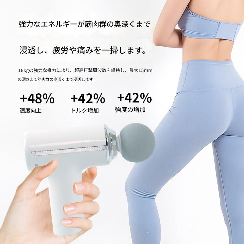 コンパクトで持ち運びに便利な電動筋膜ローラーです。 軽量設計で約490グラムの本体は、外出先でも気軽に使用できます。 球状のマッサージヘッドが深部まで届き、疲れた筋肉をしっかりほぐします。 電動式なので力を入れずに効果的なケアが可能で、運動後のリラックスタイムや仕事の合間のリフレッシュに最適です。 手のひらサイズで場所を取らず、いつでもどこでも本格的な筋膜ケアを実現します。