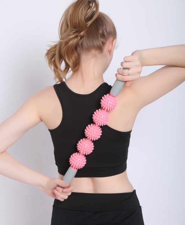 突起のついた複数の玉が特徴的な筋膜ローラーのスティックタイプです。