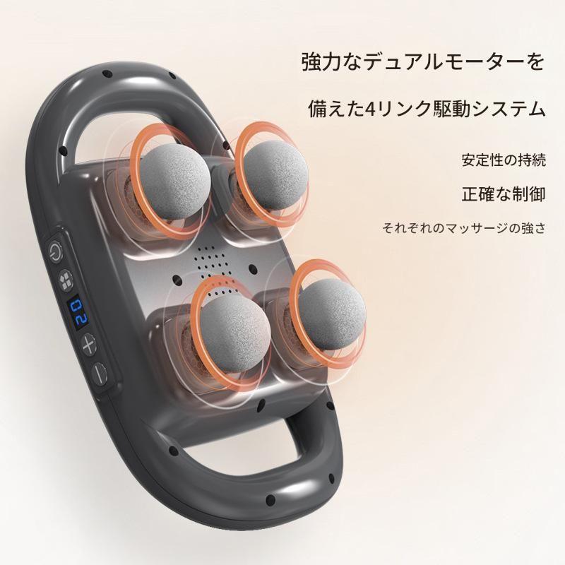 四つの球状ヘッドを搭載した電動筋膜ローラーで全身の筋膜リリースを実現します。